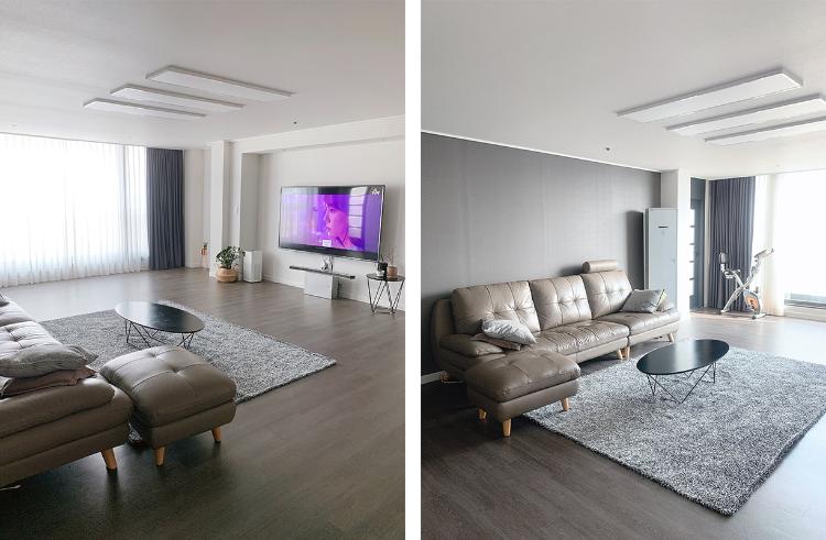 저희 집은 바닥이 많이 짙은 편인데 전에 집 바닥을 아주 연한 베이지 색상으로 깔았더니 청소 스트레스가 너무 심해서 어둡게 했더니 너무나 만족스럽습니다.