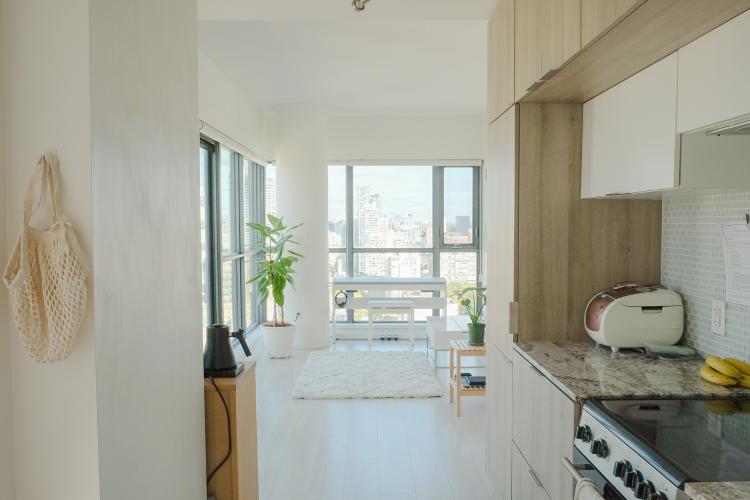 모든 게 빌트인이라 오븐 빼고는 냉장고, 전자레인지까지 저 공간에 다 숨어있어요. 무엇보다 못생긴 색이 아니라 제가 지향하는 화이트와, 우드 톤과 맞는 주방이라 마음에 들어요.