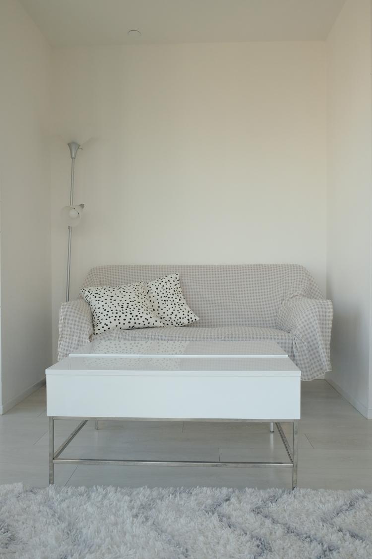 사진에 보이는 하얀 테이블은 소파 구매할 때같이 구매하게 된 Coffee table이에요. 크기가 생각보다 크지만 은색 다리와 하얀 윗 면 때문에 크게 눈에 거슬리지 않아요.