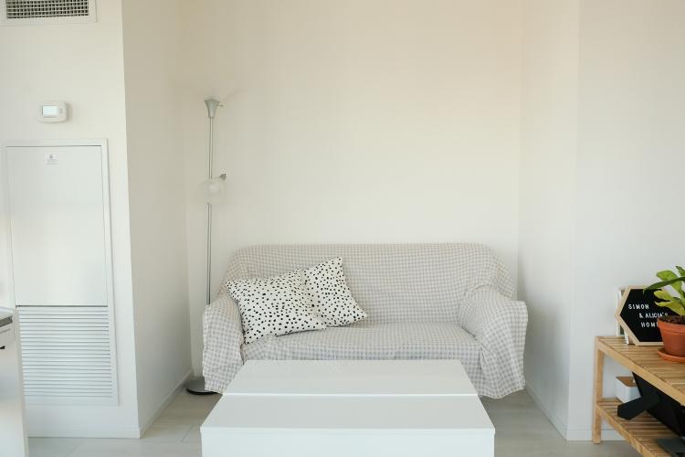 이렇게 거실 한편에 쑥 들어가 있는 공간에 소파를 위치해 뒀어요. 소파 위 놀고 있는 빈 공간에 지금 선반을 설치할까 생각 중인데 어수선해 보이진 않을까 고민이에요.