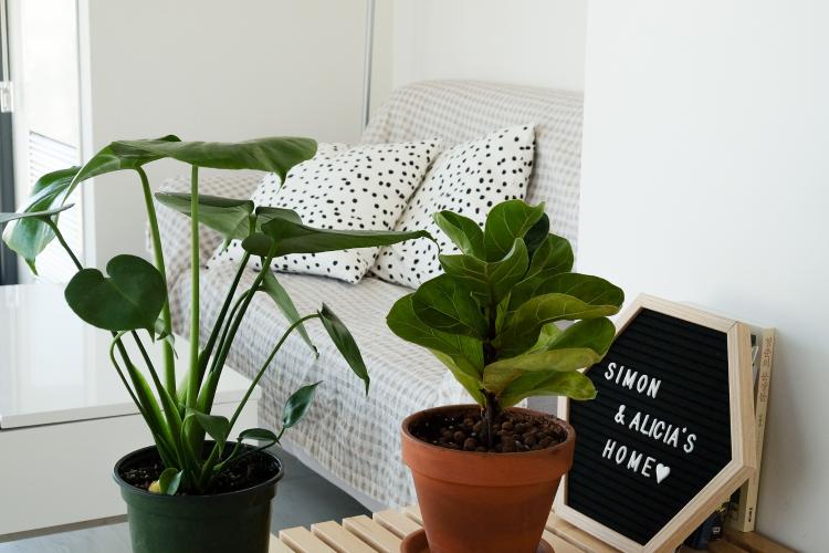 아 그리고 저희가 이사 오면서 구매한 저희 집 고무나무까지 하얗고 차가운 공간에 우드와 초록색 식물들로 따뜻하고 살아있는 느낌을 받아요.