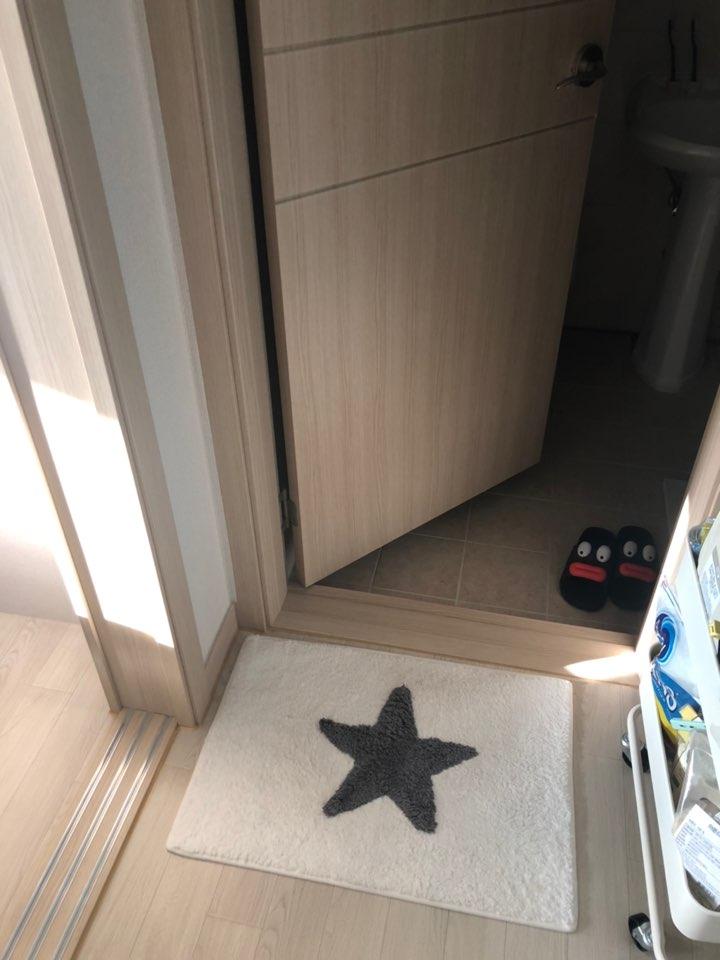 화장실 들어가는 입구에 작고 깔끔한 발판을 두었고요.