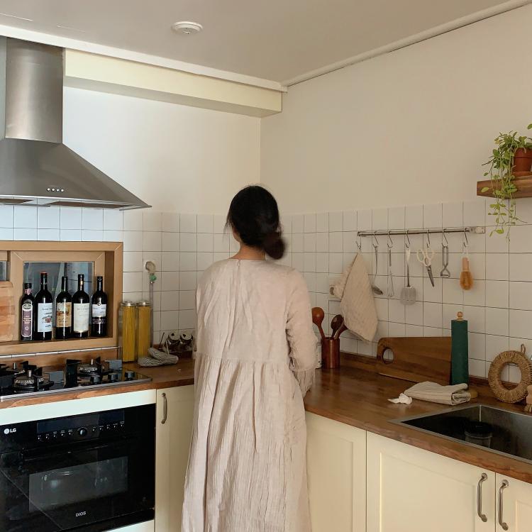 상부장이 있다가 없으니까 수납에 대해 궁금해하시는 분들이 계셨는데 저는 그릇이 그렇게 많지 않았고, 충분히 하부장으로도 수납이 가능하더라고요. 대신 락앤락 같은 반찬통들은 주방 뒤 베란다로 다 빼놨어요 :)