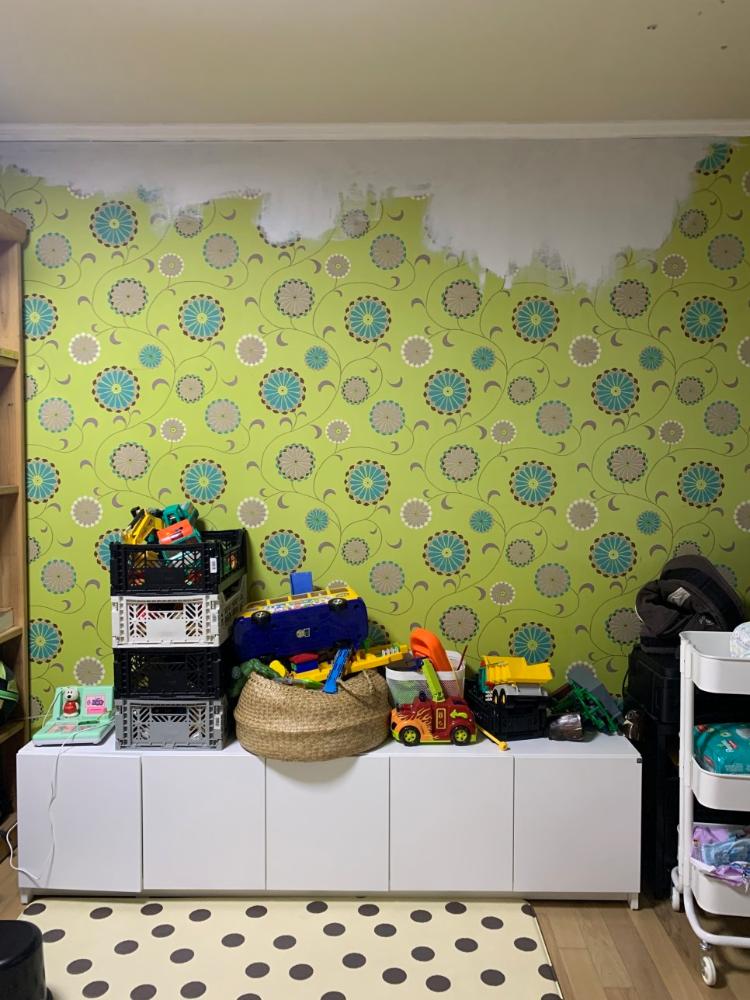 벽지 봐요ㅎㅎㅎ 아이들 놀이방은 최근에 바꿨어요. 그냥 창고로 썼었는데 애들이 놀 공간이 없으니까 거실에서 놀게 되면 장난감을 자꾸 어지르는 게 싫었어요. (저 너무 깔끔한 척 심한가요ㅎㅎ)