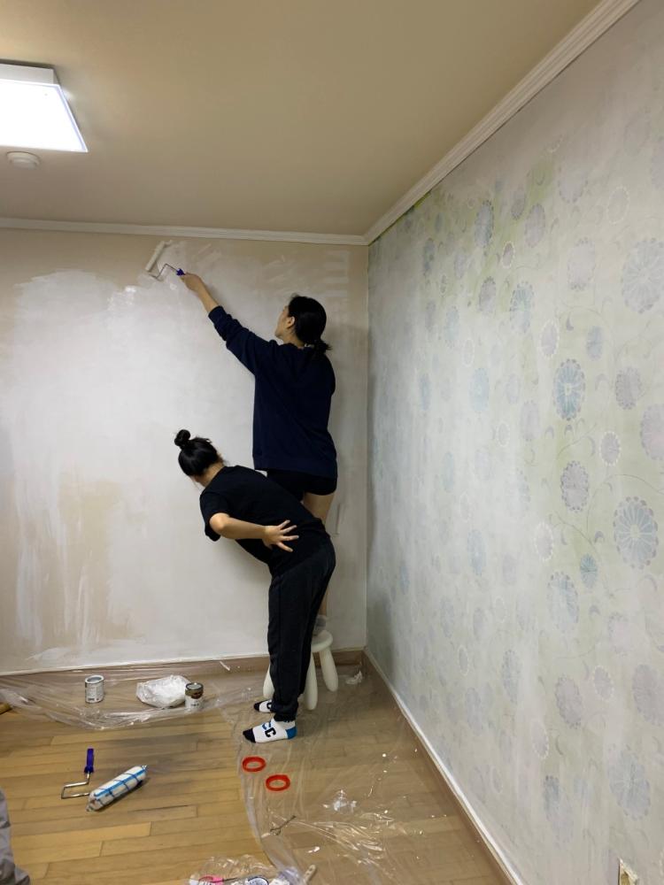 어머님이 이사 가시고 그 집에 저희가 바로 들어가는 거여서 고민이 많았어요. 올 수리는 돈도 많이 들고 그리고 저희가 살고 있기 때문에 어려울 것 같아서 고민 끝에 페인트를 칠하기로 결정했어요.