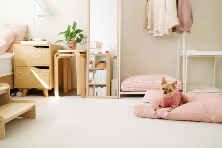 "침실은 해가 가장 오래 머무는 공간이라 구구가 가장 좋아하는 공간이에요. 큰 창을 열어 환기 시킬 때면 볕을 쬐러 타닥타닥- 또는 톡톡톡 톡- 발소리를 내며 재빨리 달려와 침대, 하우스, 쿠션에 자리를 잡고 누워 일광욕을 즐기거든요.