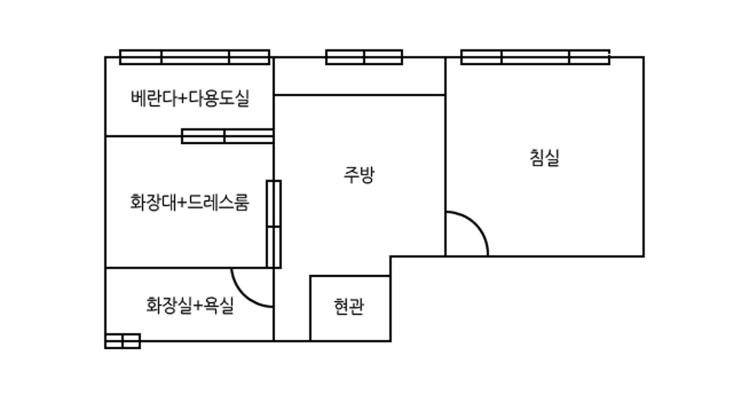 정확하게 11평이 겨우 넘는 10평대의 작은 집이에요.. 방 두개 주방 그리고 화장실.. 연식이 좀 있는 집이라서 가운데 미닫이문으로 공간이 분리되어있었어요.. 하지만 평수 대비 넓어 보이는 투룸의 구조가 마음에 들었어요.. 개인적으론 오히려 집이 크지 않아서 청소나 관리도 하기 좋은 거 같아요ㅋㅋ