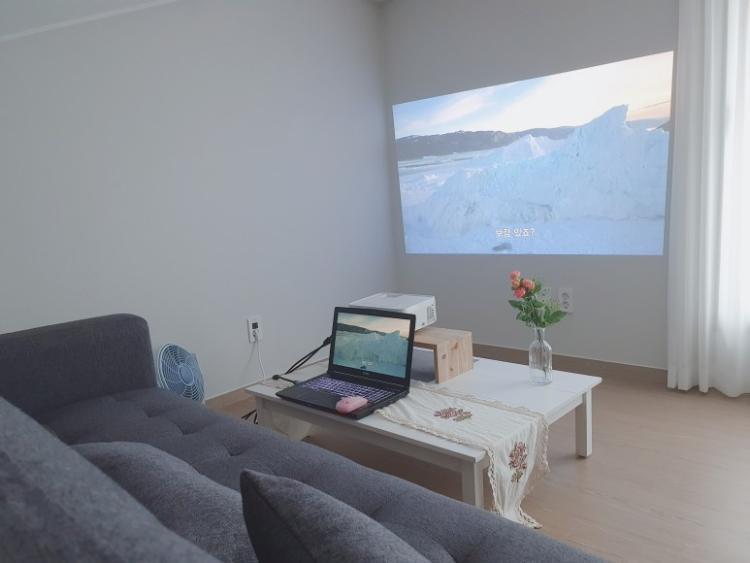 처음에는 스크린을 사려고 했는데 벽에다가 쏴도 잘보이더라구요!!