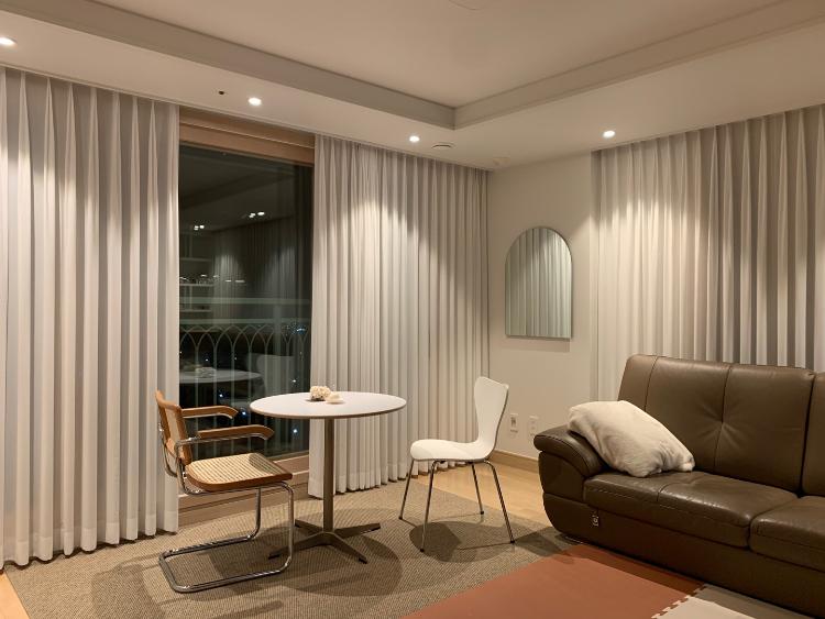 낮에도 너무 예쁘지만 조명 시공을 해놓으니 밤에 더 빛나는 거실이에요.