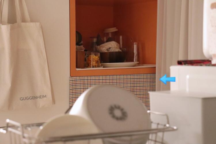 다이소에서 흰색 시트지를 구매해서 싱크대 타일 위를 덮었어요. 미관상으로도 훨씬 깔끔해졌고, 음식 하면서 타일에 지저분한 것들이 튈 때도 닦기 편하더라고요.
