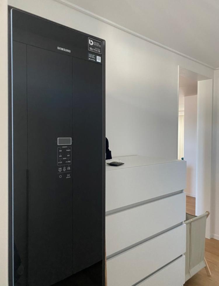 조리대 왼쪽 공간은 냉장고와 가전장이 자리 잡고 있어요. 냉동고와 냉장고는 삼성 비스포크 1도어 키친 핏 2개인데 구매했던 가전 사이즈를 미리 알려드려 그에 맞게 공사를 했기 때문에 맞춤 가구처럼, 말 그대로 비스포크 주방을 완성할 수 있었어요 :)