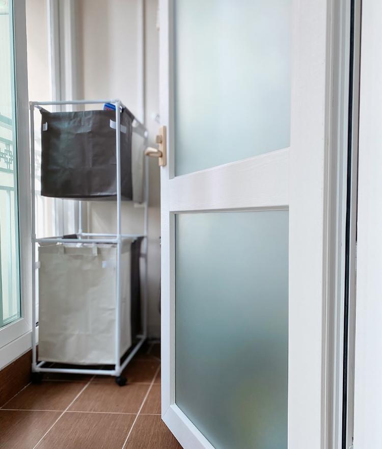 옐로홈에는 두 개의 작은 베란다가 있는데 이 공간들은 상태가 깨끗해서 별도의 공사를 하지 않았어요. 침실 옆에 있는 작은 베란다에는 분리수거 공간과 남편의 자전거를 둘 공간으로 마련했습니다.