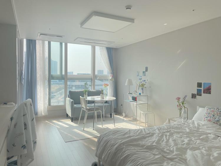저는 방의 컨셉 컬러는 화이트&스카이블루로 잡았어요. 다양한 집 자료들을 보고 어떤 식으로 가구들의 색을 고를지 생각해 보았어요. 저는 큼직큼직한 가구들은 모두 화이트로 맞추고 포인트가 될 인테리어 소품들을 스카이블루로 하기로 했어요!