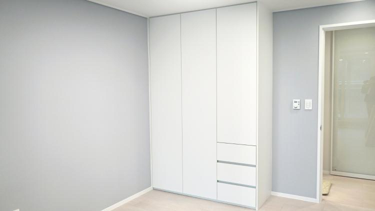 아이 방의 붙박이장은 원래 문 4짝의 커다란 붙박이장이었는데 밖에서 보았을 때 시야에 걸려 방이 더 좁아 보여 문 3짝의 붙박이장으로 줄였어요.