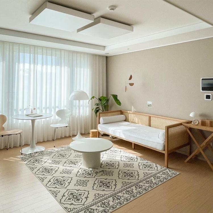 기존 벽지와 바닥이 오크우드 베이지 톤으로 무난하게 깔끔한편이라 인테리어 구도잡기가 많이 어렵지 않았어요