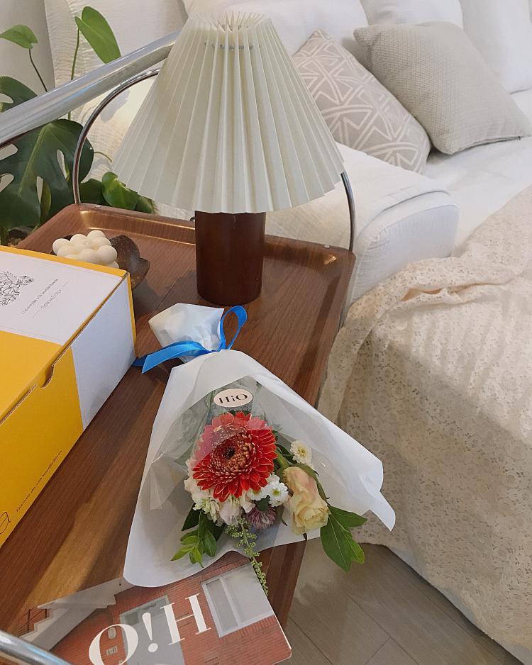 꽃과 조명 모듈가구 그리고 빈티지한 테이블보를 보며 힐링하는 저만의 공간이랍니다.