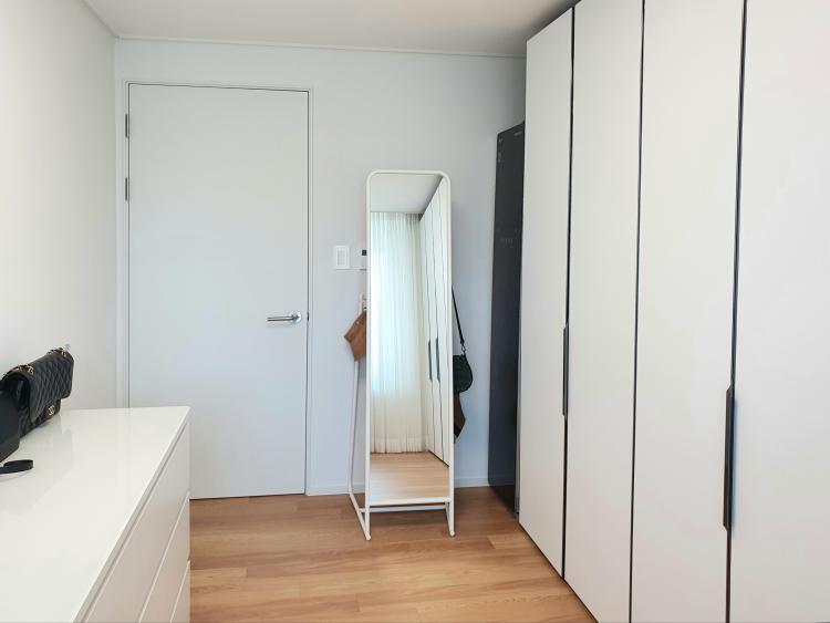 두번째로 작은 방은 드레스룸으로 사용하고 있어요. 이 곳에 붙박이장과 수납장, 스타일러, 화장대를 놓고 하루의 시작과 끝을 준비하는 공간으로 활용하고 있어요