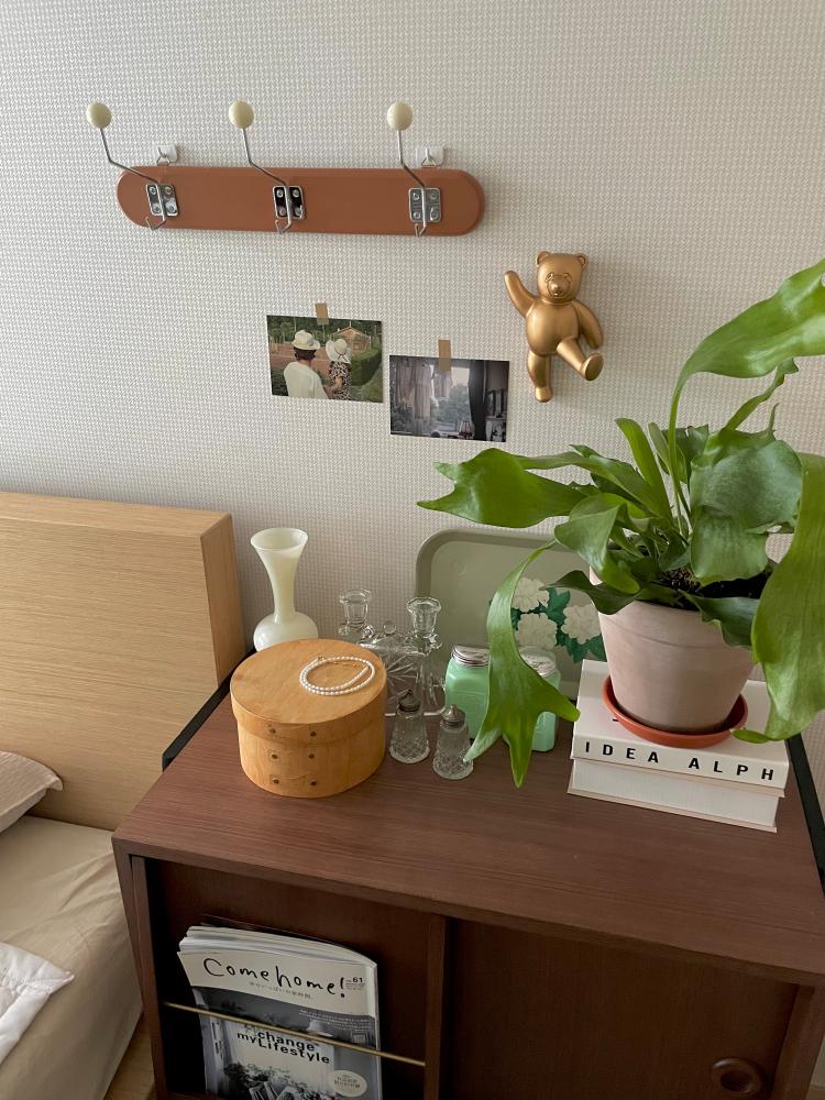 협탁 위에는 제가 좋아하는 오브제들을 배치해서 빈티지하면서도 따뜻한 느낌으로 꾸몄어요.
