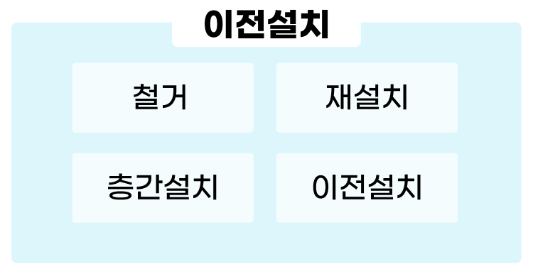 이전설치 서비스 안에는 철거/재설치, 층간설치, 이전설치(옥외)가 있는데요.