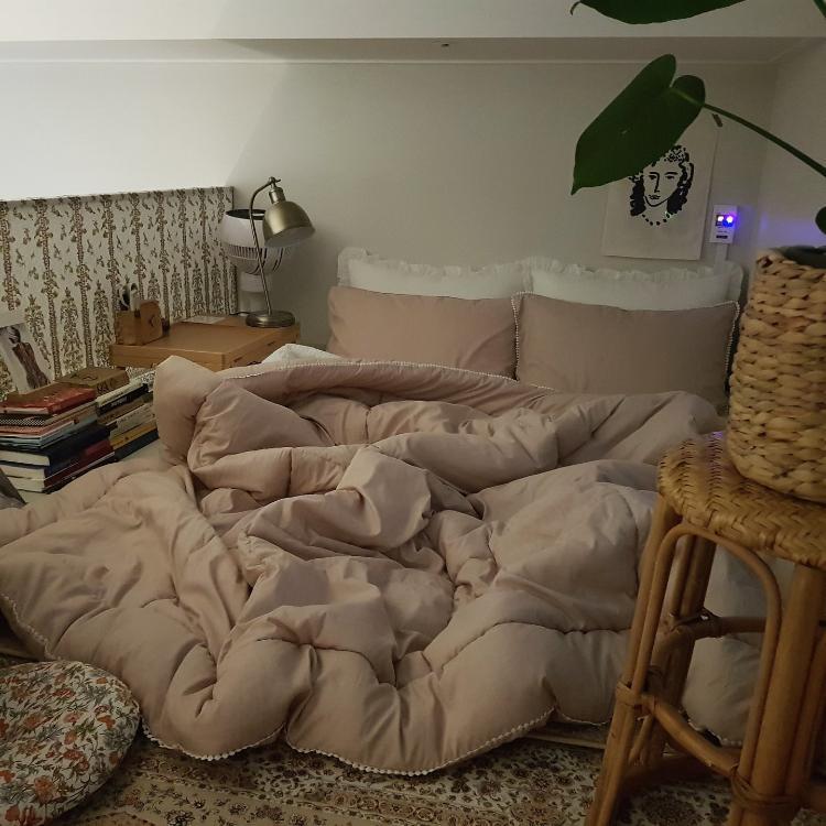앞서 보여드린 침실인데요. 변덕이 심해 계절마다 패브릭을 활용해 방 분위기를 바꾸려고 합니다.