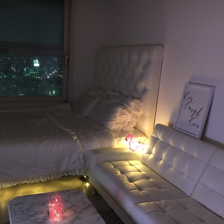 혼자 사는 오피스텔입니다 공간이 협소하기 때문에 모든 가구를 화이트로 통일했어요~ 플라밍고튜브에 흔히 구할수있는 Led전구로 간접조명을 대신했습니다 화이트컬러의 기존조명보다 훨씬 분위기가 살아나고 좋았어요