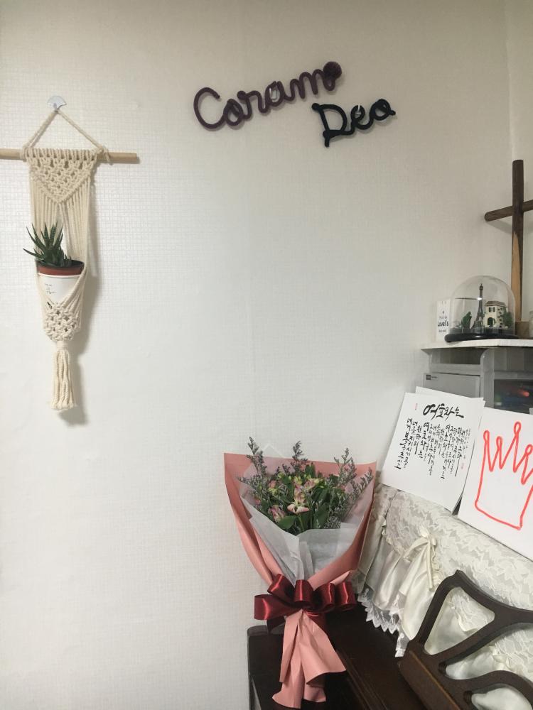 피아노랑 마크라메, 네온사인이 있는 방이에요^^