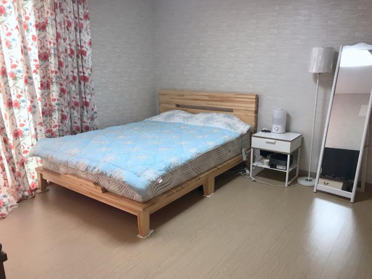 34평 아파트구요 안방사진입니다 침대는 원목 프레임으로 구입했고 협탁과 전신거울까지 모두 화이트로 통일시켜서 깔끔한 느낌을주려고 노력했어요^^협탁위에는 화이트색상의 가습기가있어서 탁자랑잘어울려요~커텐은 오래전에 부모님이 쓰시던건데 장미모양이 들어가있어서 예쁘네요^^