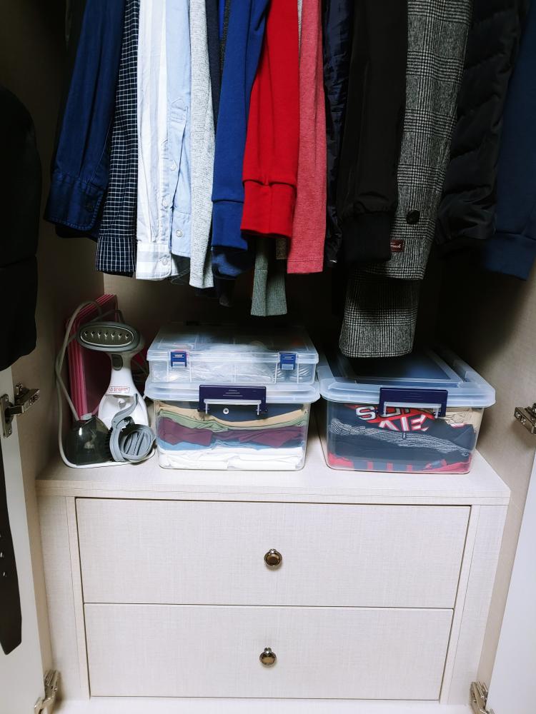 제방 가운데 옷장입니다 옷과 잡동사니 정리함에 넣으니 공간효율성도 좋고 깔끔해졌네요