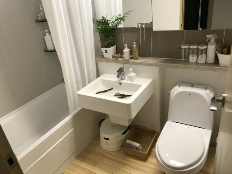 4살 딸아이와 제가 쓰던 화장실입니다 남편은 안방 화장실 쓰고 있어서 건식 화장실 사용 가능했어요