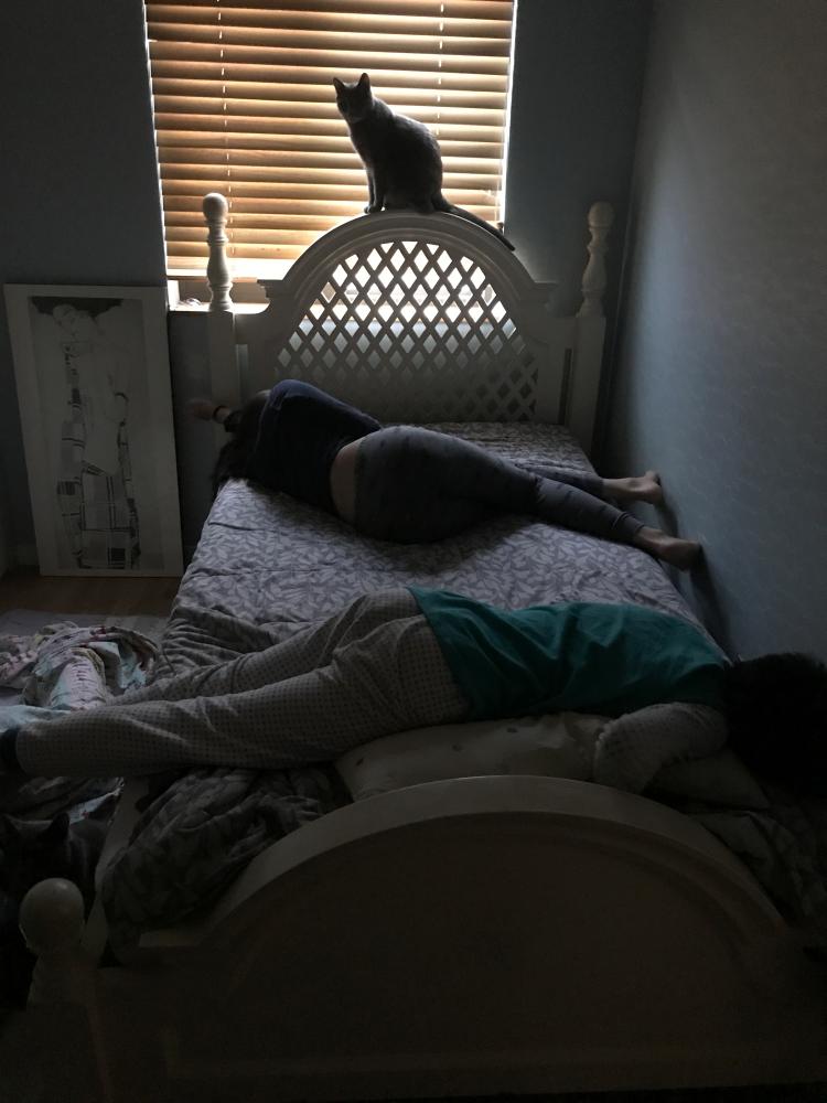 야옹님이 지배하는 침실. 아이들이 다 쓰러졌네요.
