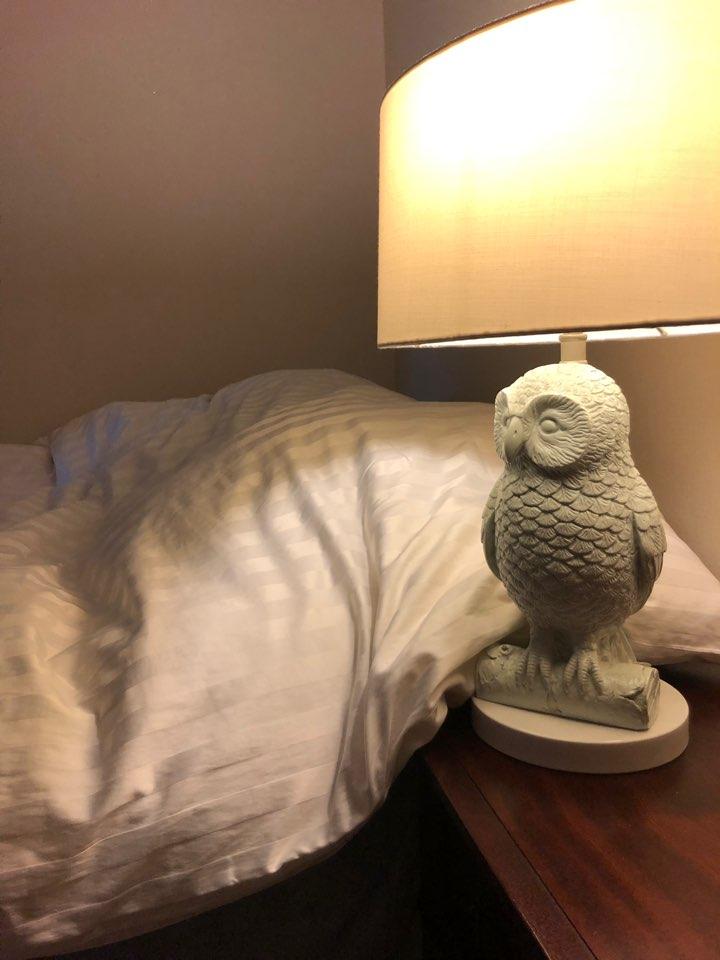 꿀잠을 도와주는 우리집 침실 부엉이 스탠드조명입니다 :)