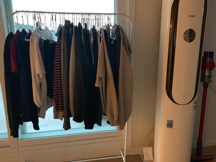 다이슨 청소기는 아직 거치대가 없어서 그냥 세워뒀는데