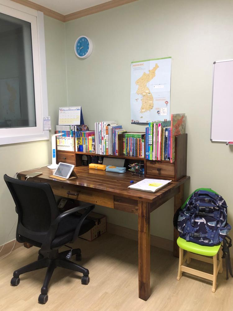 우리집 꼬맹이방입니다. 책장, 벽지를 꼬맹이가 제일 좋아하는 초록색으로 했네요~