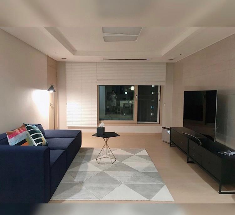 잉카블루 컬러의 소파와 블랙톤의 가구로 인테리어~