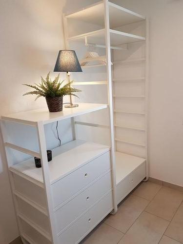 수납공간이 부족해서 서랍장이 포함된 선반을 새로 구입했어요 색상은 무난한 화이트로 택했습니다