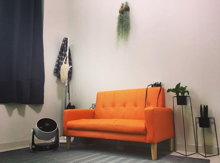 가구를 최소화 하면서 모던한 컬러를 사용해 안정감을 줬어요. 지루하거나 삭막해 보이지 않도록 오렌지 컬러로 포인트를 줘서 답답하거나 심심하지 않아요. 공간을 넓게 쓰고 싶은 1인가구!