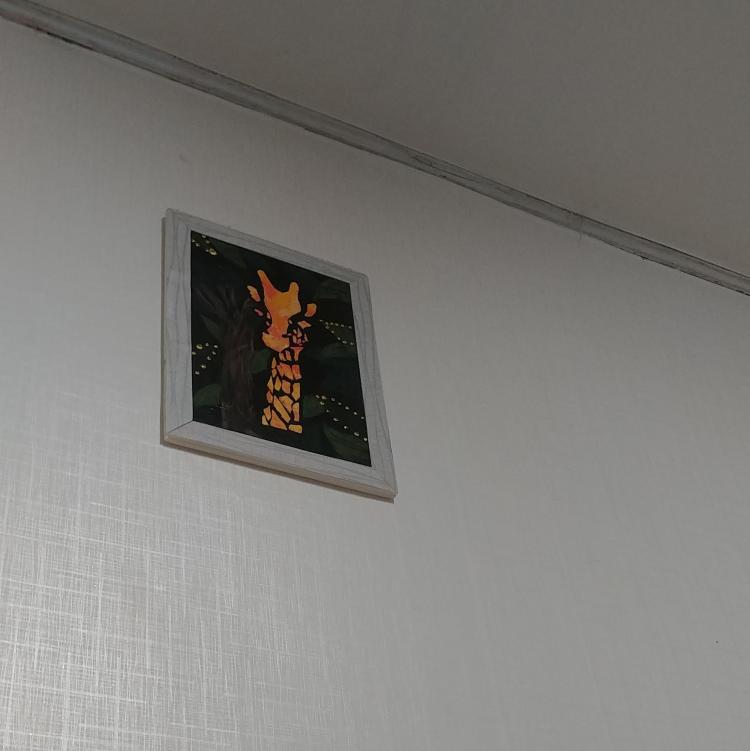 아이의 작품을 침실벽에 걸어두었어요.