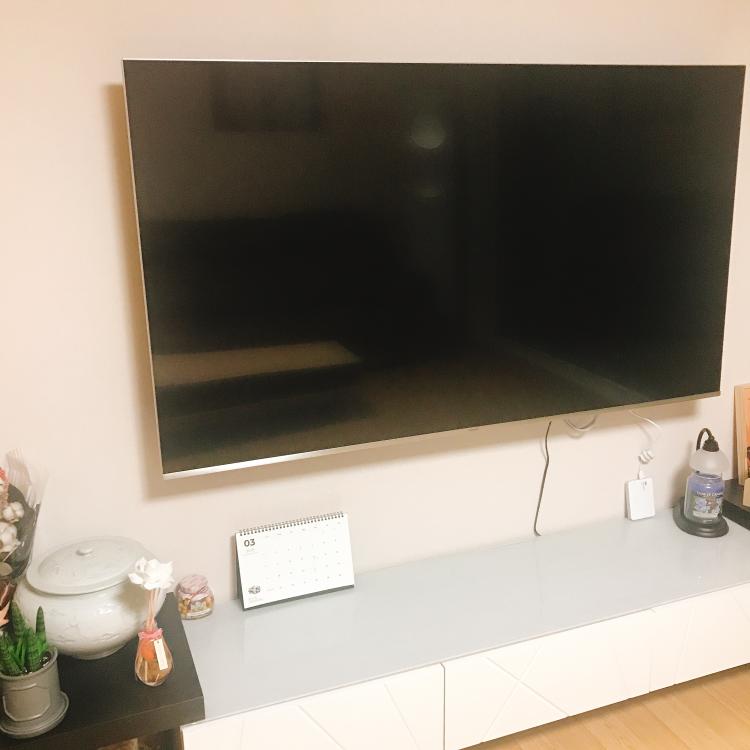 거실 한편에는 삼성 벽걸이TV와 블랙&화이트톤의 거실장이 자리잡고 있어요~