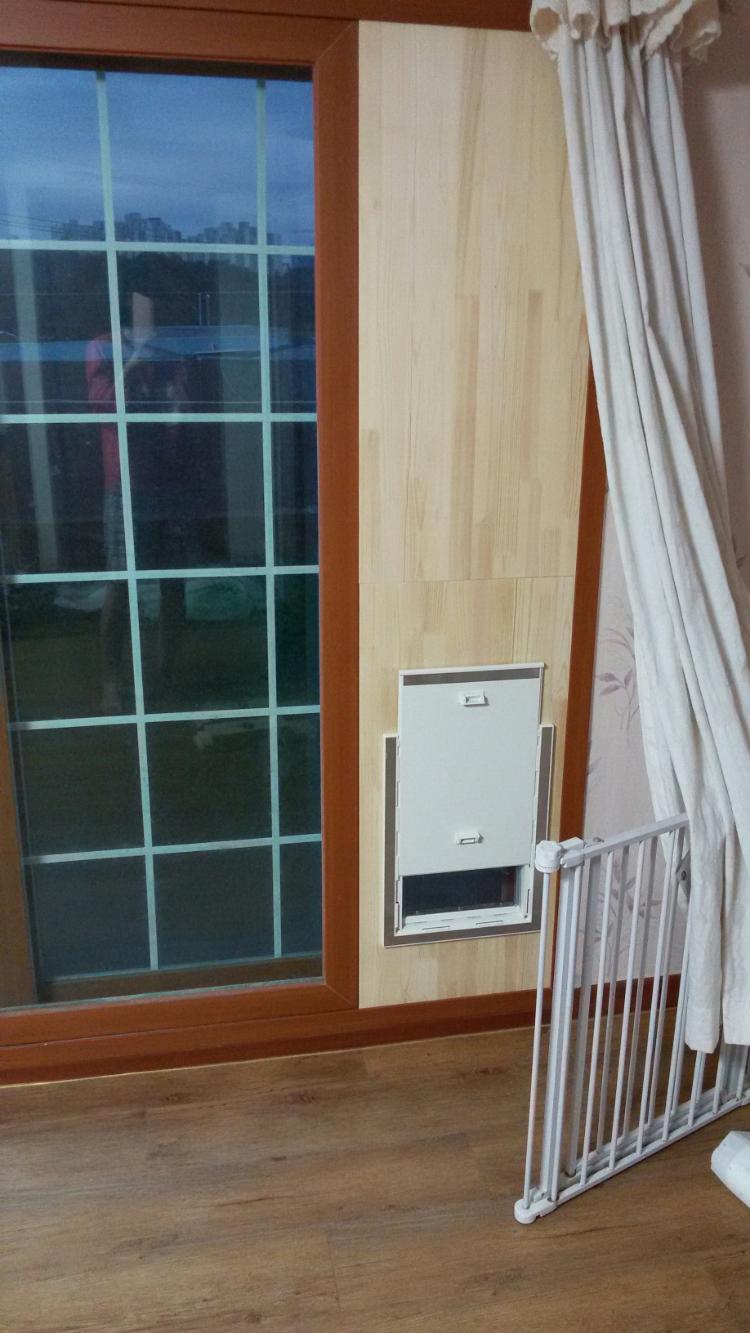 강아지용 문입니다. 안 쓸때는 저렇게 문닫는걸 내려놓고 사용할때는 위로 올려놓으면 나다닐 수 있어요