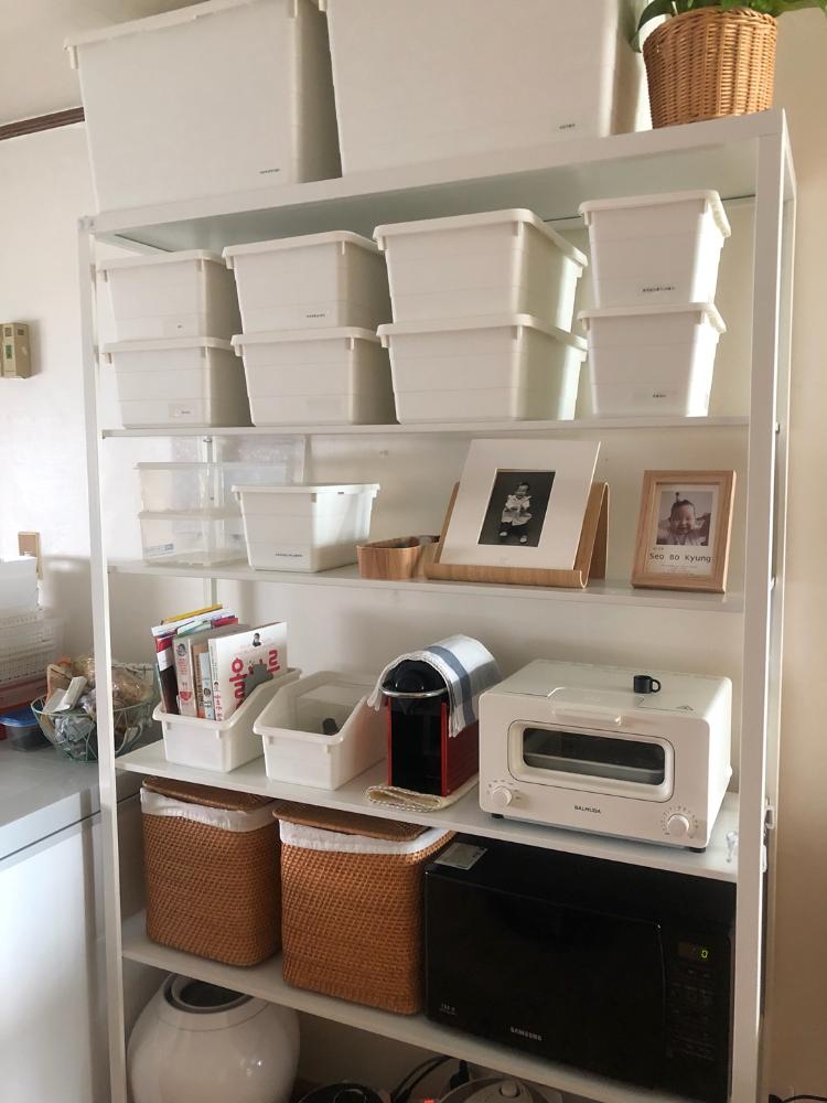 주방에 선반 설치했어요~ 발뮤다 토스터기도 놨어요^^