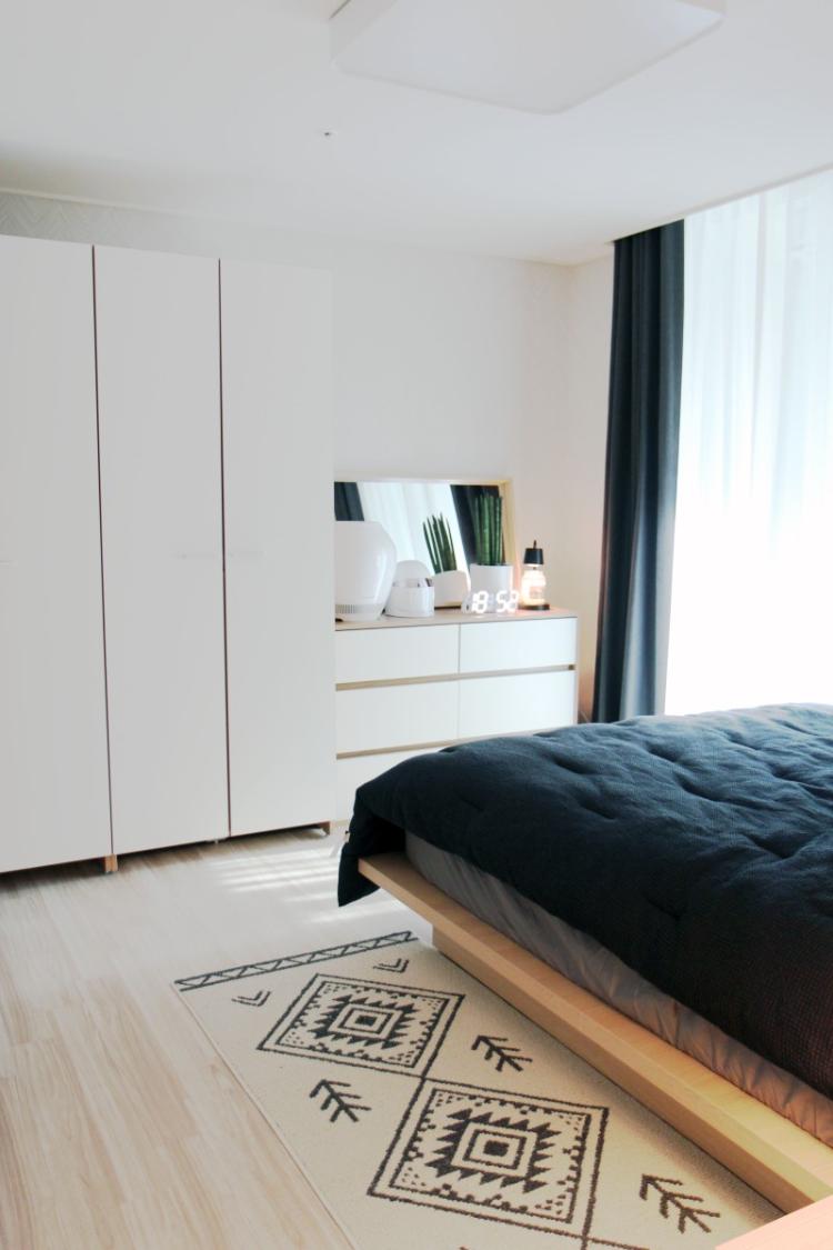 편히 쉬는 공간인 침실은 아늑하게 톤다운된 컬러만 사용하여 모던한 스타일로 꾸며보았어요~