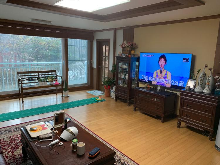 강판마루와 엔틱가구가 거실 분위기를 더 따뜻하게 만들어 주는 것 같습니다.