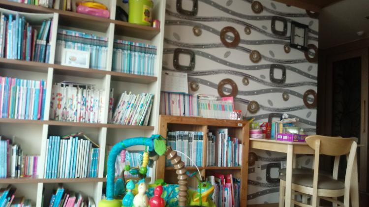 거실 서재화 했어요. 책장으로 가득한 집이에요. 책상까지 거실로 내놓으니 아이들이 좋아하네요