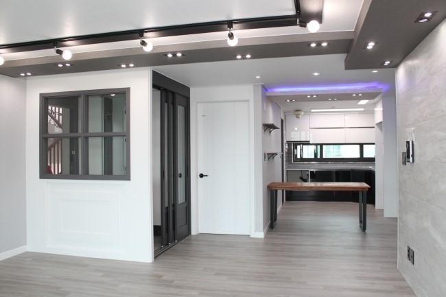 전체적인 화이트 컬러에다가 그레이 톤으로 엣지 있게 꾸며 보았습니다