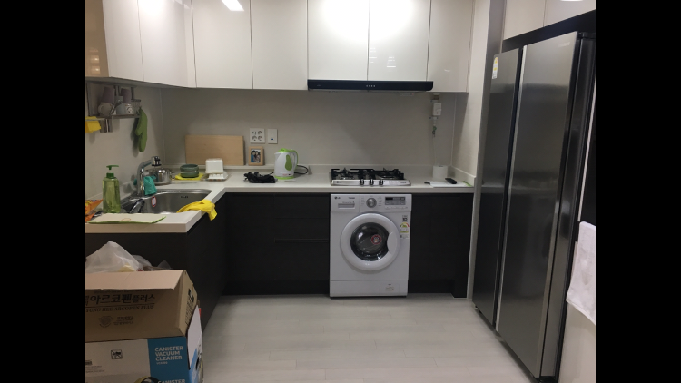 드럼세탁기가 빌트인되어잇는 저희주방입니당