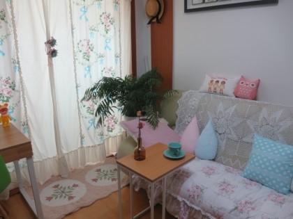 아담하면서 따뜻한느낌을 연출하고싶어 제가 나름 꾸민 저희집거실이예요 소파색깔이 마음에 들지않아 뜨개레이스로 가리긴했는데ㅎㅎ 패브릭소파로 바꾸고싶네요 신랑과저 그리고 두돌된 딸이 함께 생활하는 러브하우스입니다♡