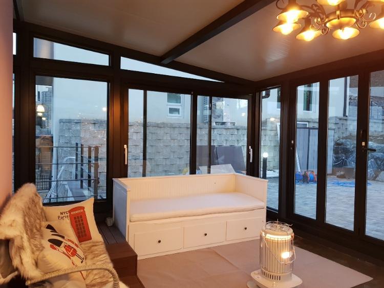 뒷마당에 천장과 샤시 설치해서 공간만들어서