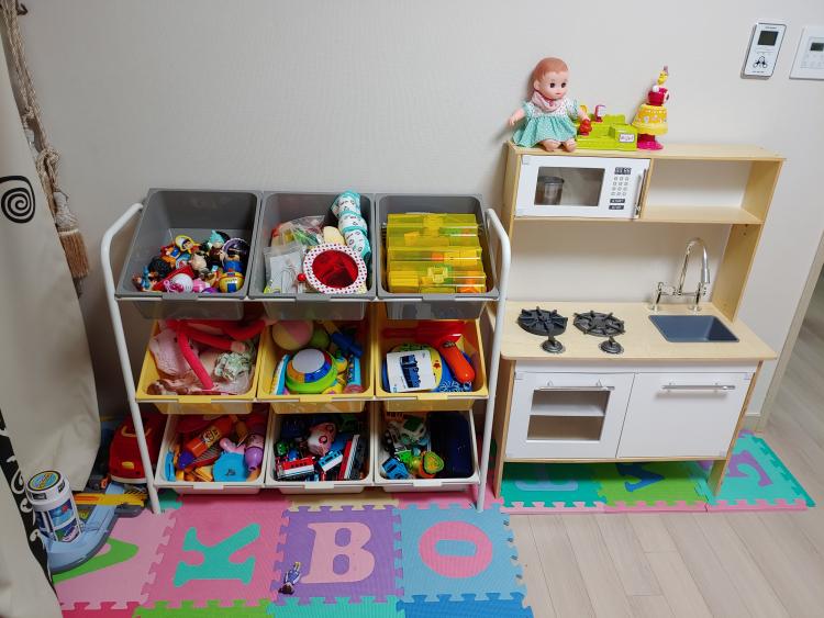 한샘 모리 트롤리로 정리한 아이들 장난감입니다