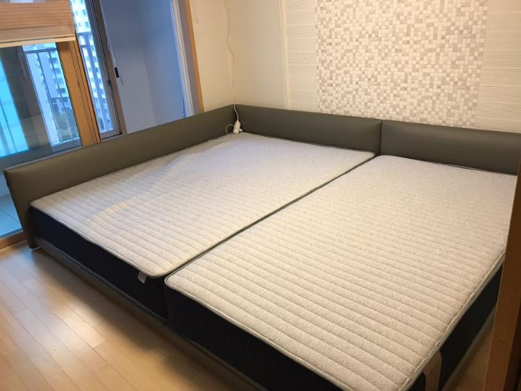 4살 3살 아기들과 같이 자기위해 큰맘 먹고 패밀리 침대로 바꿧어요. 다 같이 자니까 좋구 넓어서 뒹굴거리기도 좋아요~