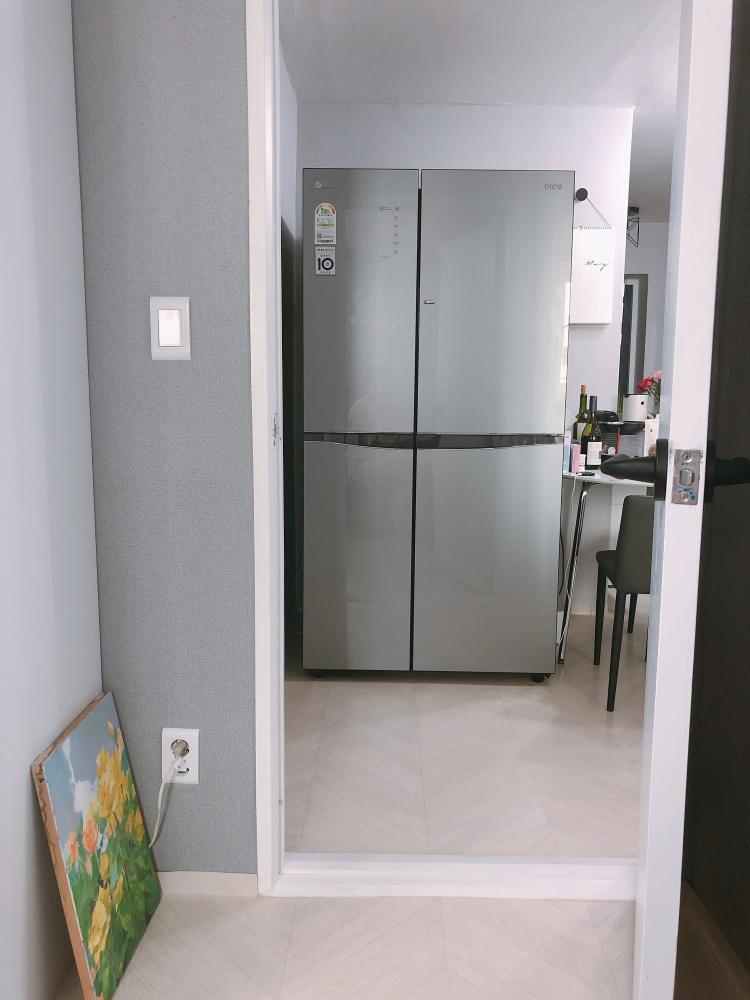 저희집 냉장고에요^^ 엘지 양문형 냉장고 이구요~ 강화유리냉장고에요. 2년 전 결혼하면서 혼수로 구입했는데 저는 4도어보다는 양문형이 더 실용적이고 편한거 같아서 잘 산거 같아요^^ 2인 가족이 쓰기엔 조금 크지만 앞으로 식구가 늘어갈거 생각하면 처음부터 큰 냉장고를 산건 잘 한 선택이라 생각해요>_<